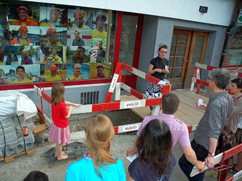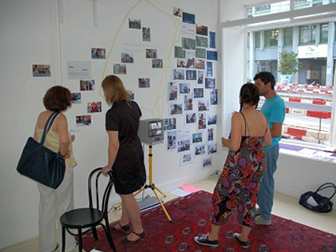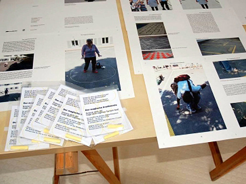 The “headquarters” of the project were situated in the Artfoyer Cavigelli and the window of the Gemeinschaftszentrum Wollishofen. From here, the project expanded through actions and performances that embraced other areas of the neighborhood. The artistic interventions were all site-specific responses to the neighborhood of Wollishofen, raising questions about how we interact with each other within a community, about public versus private spaces, about recognizing the others not just in their stereotypical quality of being “workers“ or “artists“ or “immigrants“.