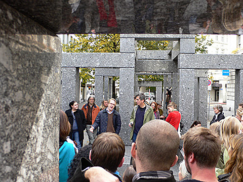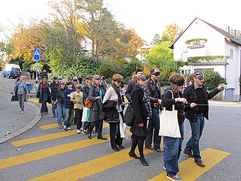 kunstpassanten is a curatorial and educational project by Maren Brauner und Irene Grillo. Its concept was developed during the MAS Curating and its realisation started in October 2009 in collaboration with the Fabriktheater Rote Fabrik and the Institute for Contemporary Art of the Zurich University of the Arts. On the one hand the project aims to raise questions about the definition and the processes of the development of public spaces – considered not in their physical and quantitative meaning, but more in an acting and qualitative sense; on the other hand it intends to examine the function and the possibilities of art in improving these processes using the investigative format of the walk.