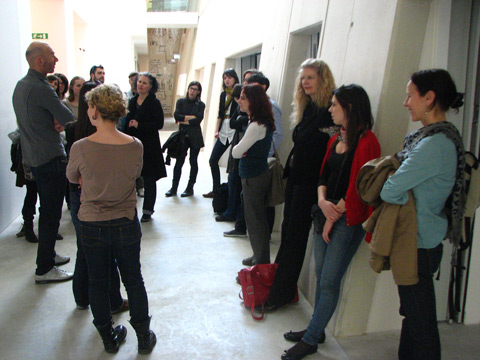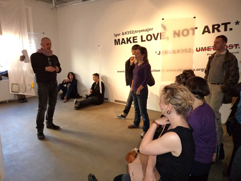 SCCA-Ljubljana / Museum of Contemporary Art (MSUM), guided tour by Igor Španjol / Alkatraz Gallery with Jadranka Plut / Ganes Pratt, Mala galerija with Primož Nemec / Kapelica Gallery with Jurij Krpan / Emanuel Andel & Christian Gützer/ 5VOLTCORE: Saving Myself exhibition, Metropolis Gallery / Museum of Modern Art (MG), MG: 20th Century/Continuities and raptures, guided tour by Marko Jenko / Metka Krašovec: A Retrospective, guided tour by MartinaVovk / International Centre of Graphic Arts (MGLC) with Nevenka Šivavec, ABoT – Artists’ Books on Tour, Artist Competition and Mobile Museum, guided tour by Breda Škrjanec / Print!, opening of the exhibition, Editions – Ready to Print 13 (16 x A4) = A0 x 13, MGLC / City Art Gallery with Alenka Gregorič / Sandi Červek: Paintings and drawings 1985–2011, guided tour by Mateja Podlesnik / Gallery Škuc with Vladimir Vidmar, Beyond occupied images, exhibition, guided tour by Vladimir Vidmar / Aksioma with Janez Janša, Igor Štromajer: Make Love, Not Art., exhibition / Photon Gallery with Miha Colner, Matija Brumen: Ordinary Spaces – Extraordinary Views, exhibition / P74 Gallery wtih Tadej Pogačar, Mihael Giba: Trust me I trust you, exhibition, guided tour by Yasmin Martin Vodopivec.