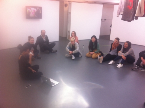 Together with the curating course at the Royal College of Art, and their tutor Rebecca Heald, we formed groupings based around their graduate exhibitions on themes including language, globalisation, theatre and the black box. This was an opportunity for curating students from both programmes to exchange ideas on contemporary curatorial practice.