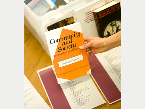Communities are defined by artists, scholars and urbanists as an antithesis to general society and its constraints, but they differ widely from one another in the roles they play. Whether the community is thought of as a secret utopia or as a threat to the individual, whether as a cooperative, a neighborhood or a societal group, and whether or not the res- pective community is to be dissolved – every time, a certain artistic, architectural or theoretical concept of community initiates a subtext directed toward the public. Certain actions are implicitly designated for the visitors, the users, the readers; the public is revolutionized, integrated, informed, instructed, involved or controlled. The archive is con- ceived as a project apparatus on the broad theme of “community,” an apparatus re- presenting different and contradictory approaches and points of view on the basis of which “community” can be discussed. The archive will serve prospectively as the project apparatus of a research project and is constantly expanded.