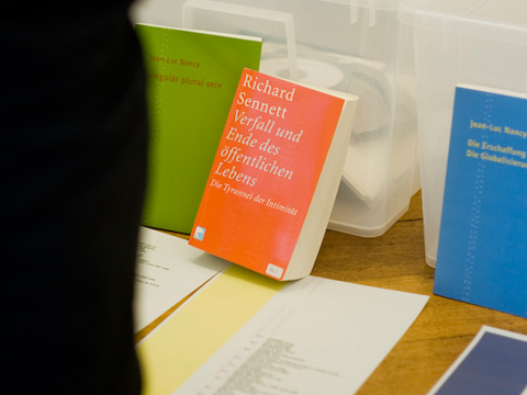The artistic dossiers are accompanied by a project apparatus of 30 publications. They explore recent philosophical and theoretical discourses on communities.