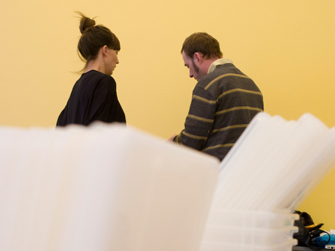 In the series inter/act: New Social Sculptures we explore in three projects and one accompanying archive the relations between “the public,” cultural producers, curators, the institution, and the specific social context.This series in the projectroom enter starts with the Archive of Shared Interests, a collection of and research into contemporary artistic works along the thematic topic of “temporary communities.” In the following projects, Szuper Gallery (Susanne Clausen and Pawlo Kerestey), San Keller, and Jeanne van Heeswijk, in collaboration with students of the Postgraduate Programme in Curating and inhabitants from Thun, will produce new works which investigate the recent living conditions in Thun.