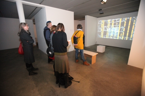 Following a chance encounter, Vera Frenkel has drawn together documentary and fictional elements to create a work about a stranger she barely knew but still finds compelling – a collector of scaffolding images –– fusing praise and lament into a video ballad for a changing city. The narrative unfolds in an interplay of two voices; a letter from one woman being read by the other.